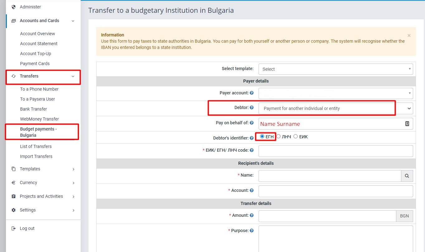 Как да изпълнявате плащания към бюджета в България и Румъния от Paysera сметка